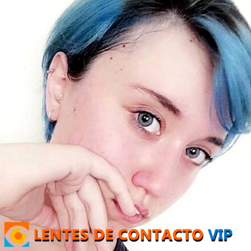 Lentes de contacto descartables de Solótica, lentes con aro color gris claro. Duración: 6 meses.