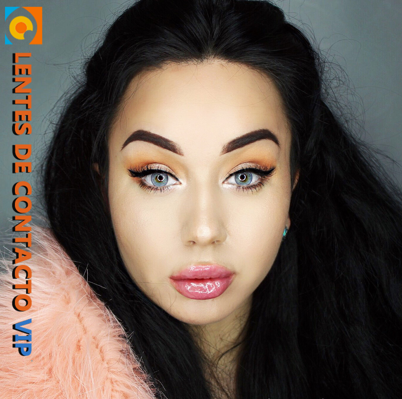 Lentes de contacto descartables de Solótica, lentes con aro color verde con celeste. Duración: 6 meses.